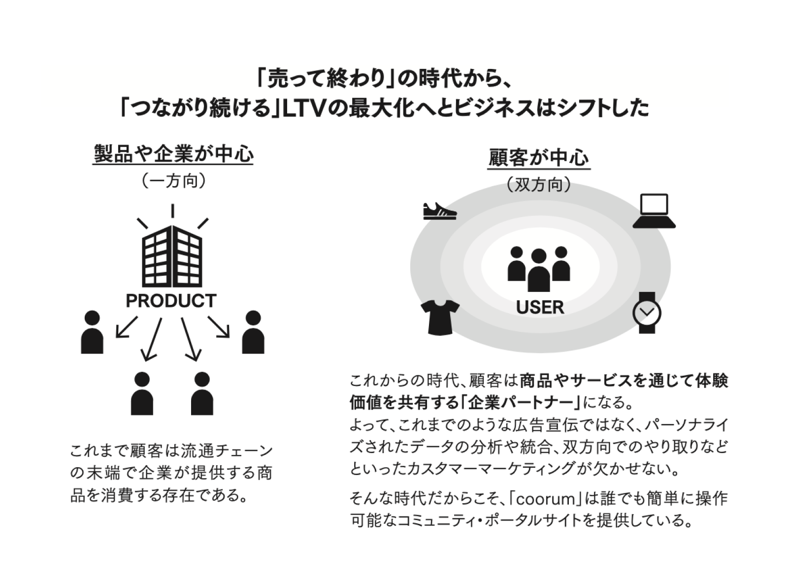 経営の在り方をこれまでの「企業・商品」中心から、「顧客」中心に変革するーー